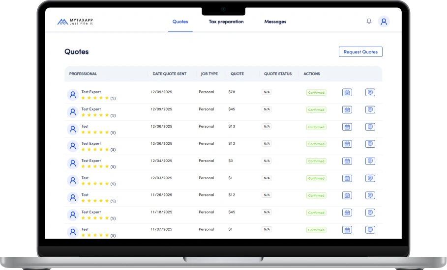 MYTAXAPP is a technology platform connecting users with independent tax professionals. We do not provide tax advice or influence the fees set by practitioners.